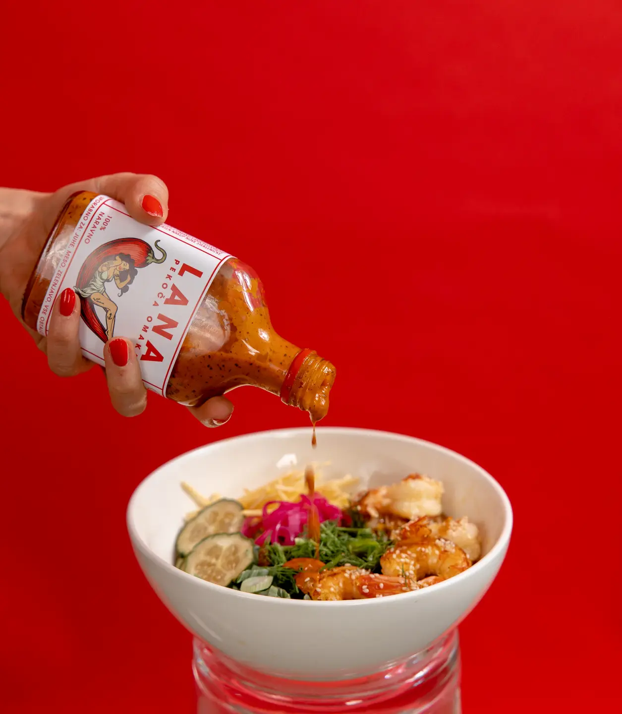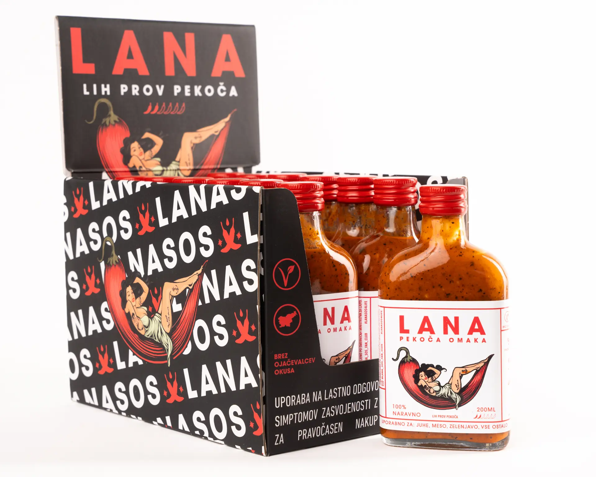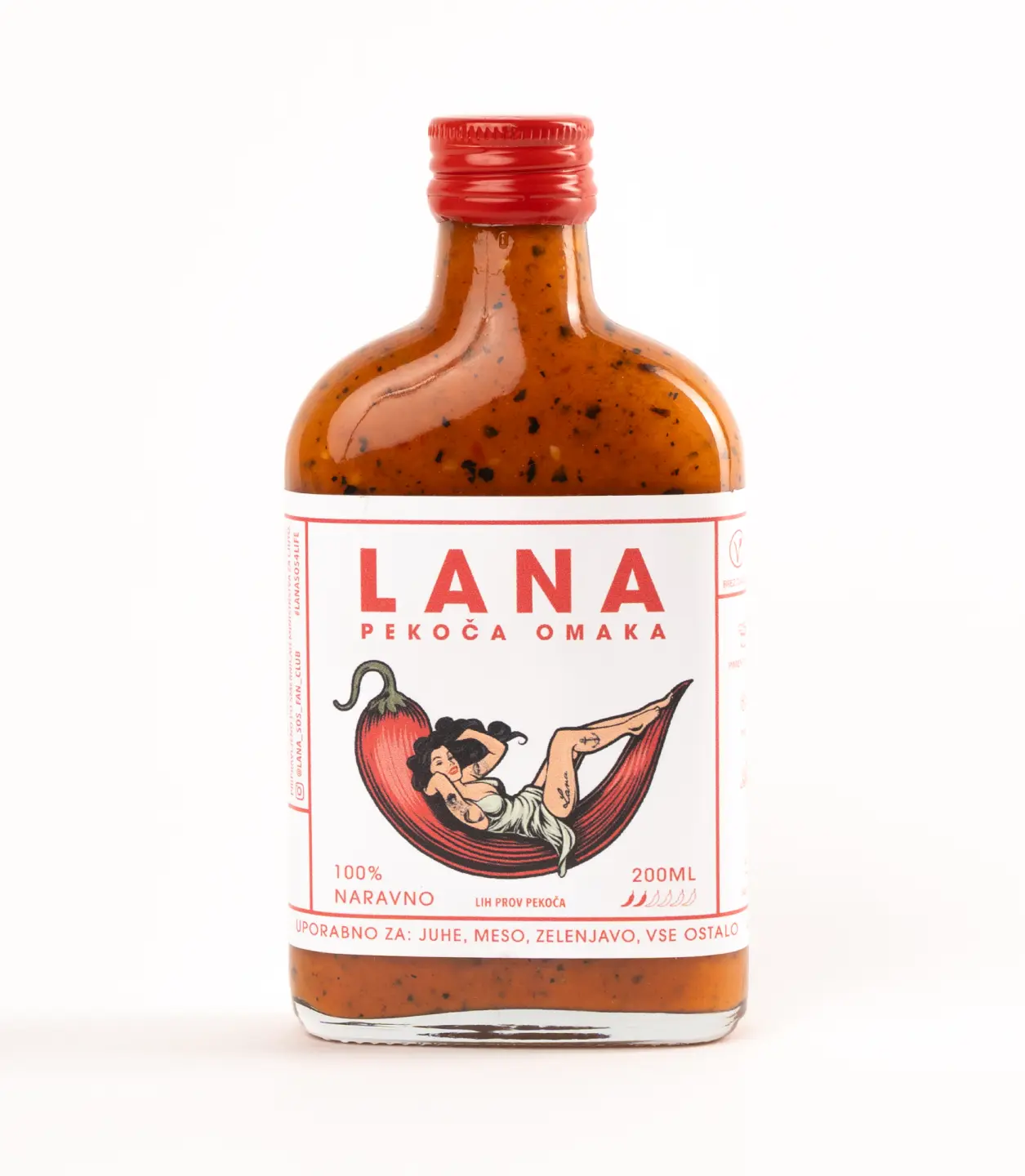We created a bold and instantly recognisable identity that positioned Lana as the coolest spicy sauce in Slovenia. At the centre of the brand stands Lana herself — a charismatic pin-up muse reimagined for modern food culture. Each flavour introduces a new version of her, giving every sauce its own character, story, and attitude.